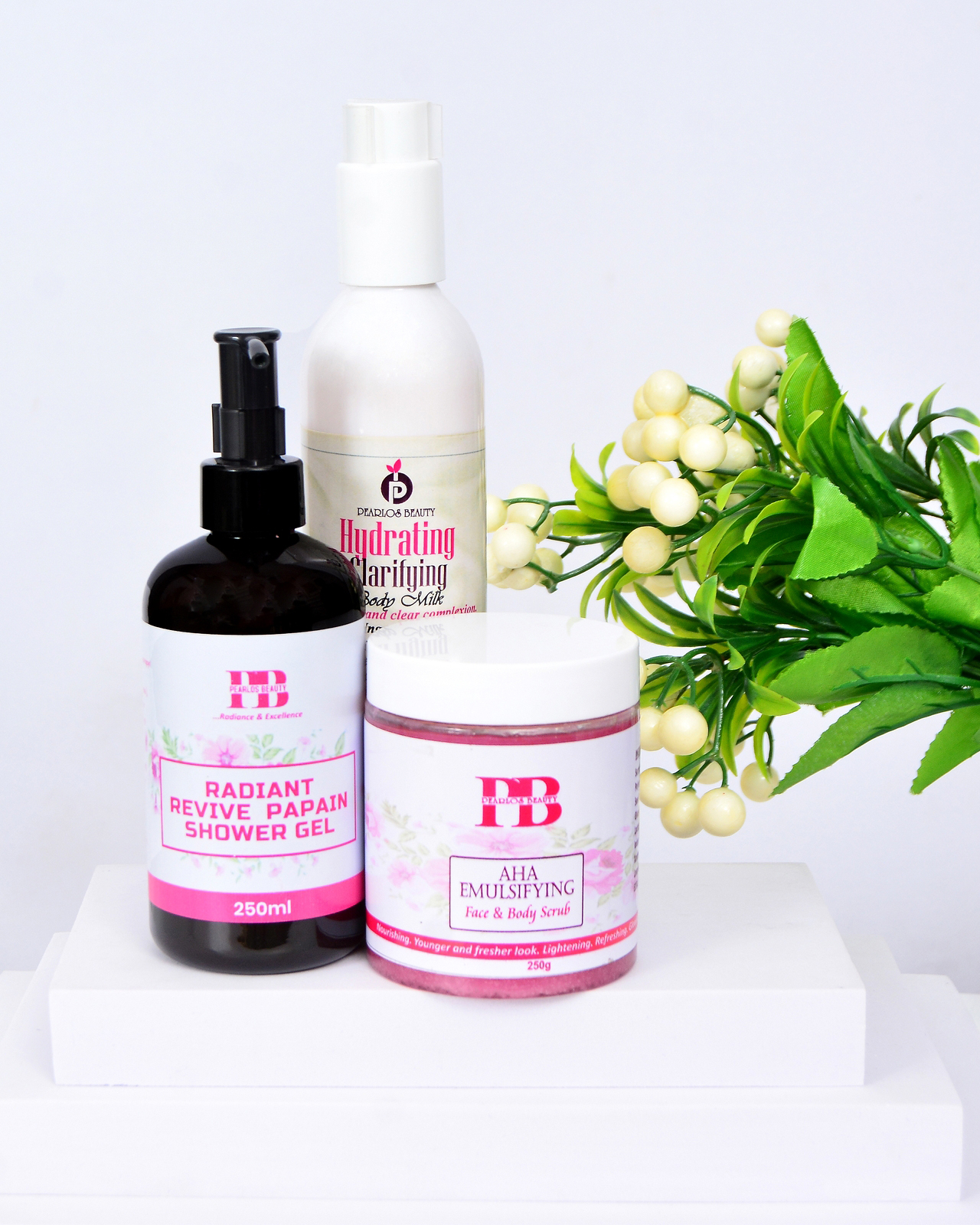 1. _Radiant Revive Papain Shower Gel_ (250ml) – Gentle, enzyme-rich cleanser